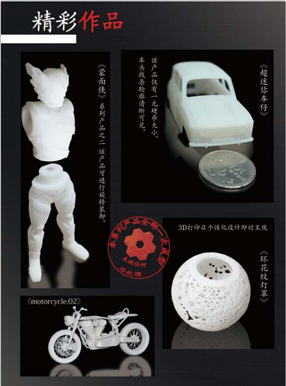 操作簡單,加工速度快,產品生產周期短,無需切削工具與模具;可加工結構復雜、使用傳統加工方式難以成型的產品;使CAD數字模型直觀化,降低錯誤修復的成本;可聯機操作,可遠程控制,利于生產的自動化。高端穩定的電控系統,任何打印速度下精確控位精準成型。