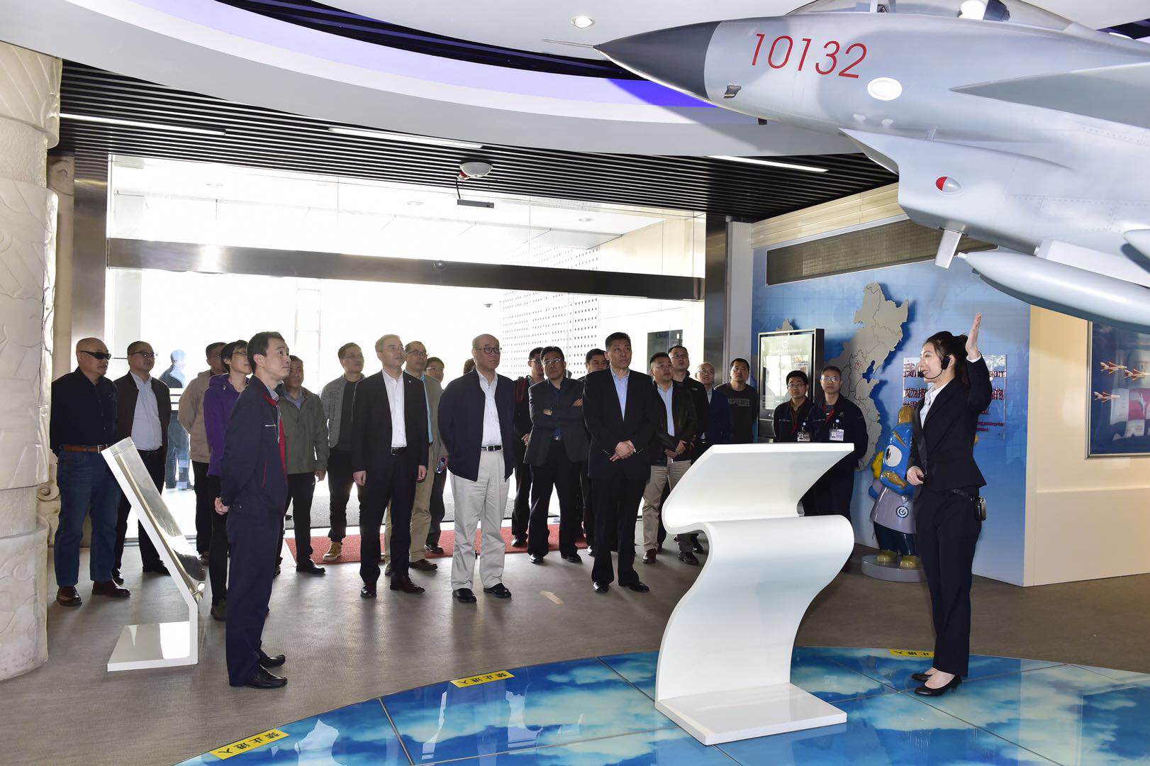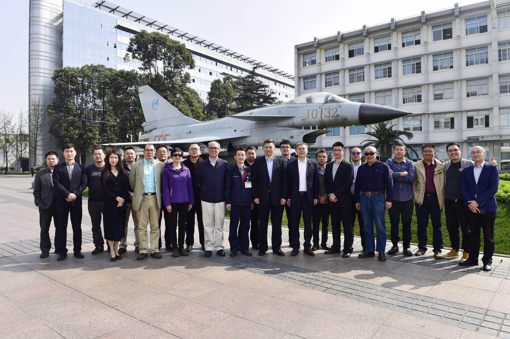 代表們與成飛領(lǐng)導(dǎo)在J-10戰(zhàn)鷹前合影